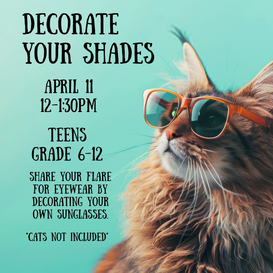 April 2026-YA Program-Decorate Your Shades (Instagram Post) Published February 13, 2026 at 1080 × 1080 in Teens
